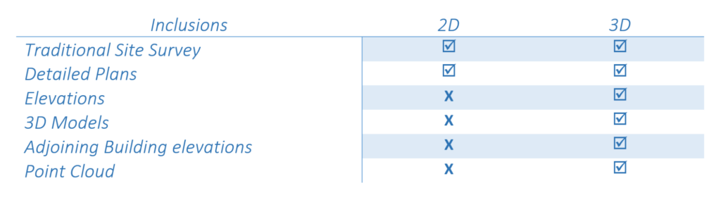 When compared with a traditional 2D survey, there is only a marginal increase in price, which this alone makes our 3D Surveys well worth the investment.